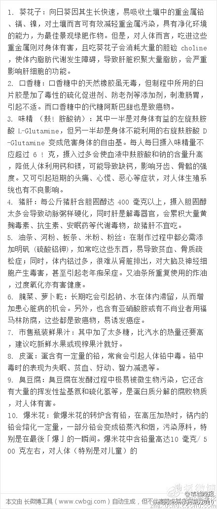 飞 飞凡科技 博士后 注册 2011-02-27 消息 1,638 反馈评分 10 点数 61 2013-05-26 #1 葵瓜子、味精、口香糖、猪肝、腌菜、皮蛋、臭豆腐、油条......都在黑名单上,童鞋,看来真要管住自己的嘴了。转 附件 01.jpg 170.5 KB · 查看: 149