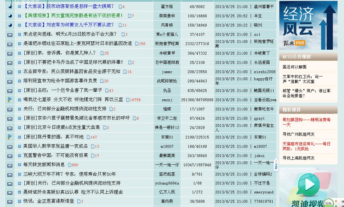 自由主义 教授 注册 2010-03-25 消息 3,421 反馈评分 6 点数 61 2013-06-25 #4 凯迪社区 猫眼看人版块部份截图: [attachmentid=314308] 附件 360截图20130625210240828.jpg 197.6 KB · 查看: 209