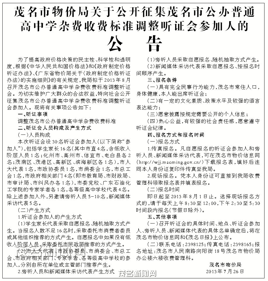 市高中学杂费收费My Webpage标准调整听证会