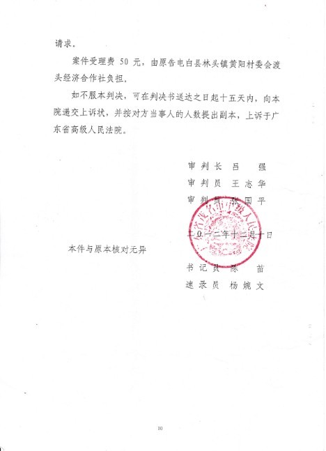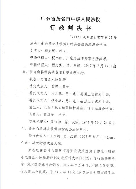 电白县林头镇黄阳村民