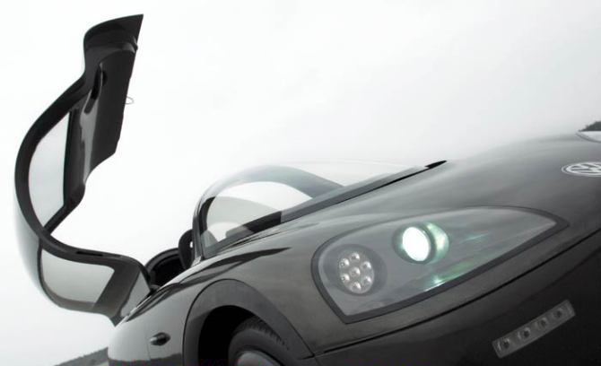 车内采用了整洁,运动的设计能为2个人提供足够的空间。塔式的玻璃车顶由聚碳酸酯制成并有防紫外线功能。座椅采用镁金属结构以减轻重量。后座乘客可以很舒适的将脚放在位于驾驶位2旁的脚凳上面。驾驶员面对的是一个平顶的方向盘,座舱的风格就好像置身于一台喷气式飞机上。中央圆形仪表的左右2边是2台显示屏提供后视图像,在前面右边控制台上的是换档开关,电子手刹开关以及启动键。左边控制加热,通风以及车内灯照明。