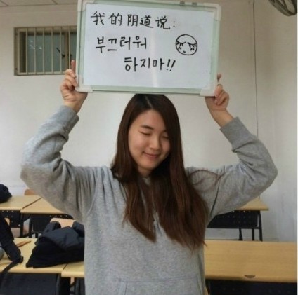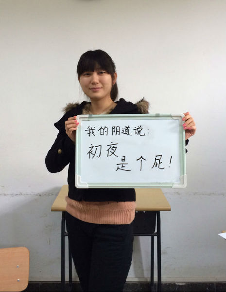 近日北京外国语大学一群女生为宣传话剧《阴道之道》,拍摄了17张举白板的系列照片,命名为“我的阴道说”,在网上引发巨大争议。女生们在白板上写的内容包括:“我的阴道说:我要尊重!”、“我的阴道说:她只听我的!”、“我的阴道说:非诚勿扰”,还有一句想必刺痛了很多人的神经,“我的阴道说:初夜是个屁!”。在接受媒体记者采访时北外英语学院书记表示,“开展关怀女生的活动是可以理解的,校团委审核通过,内容也应该是健康的。”