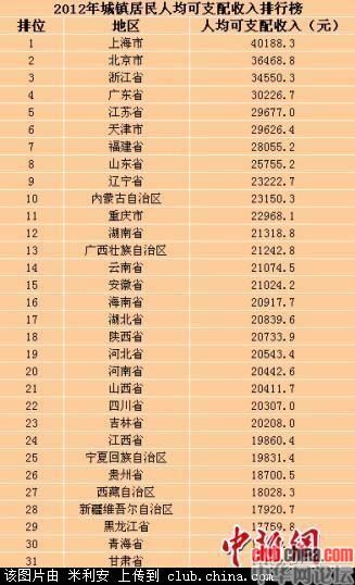 “居民收入35年增长71倍”这一消息引发社会广泛关注。根据国家统计局公布的数据,中新网记者梳理了31个省(区、市)的2012年城镇居民人均可支配收入排行。