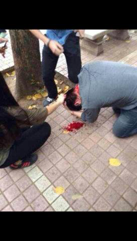 市委门口大草坪开始打人,打伤好几个,未成年人都打