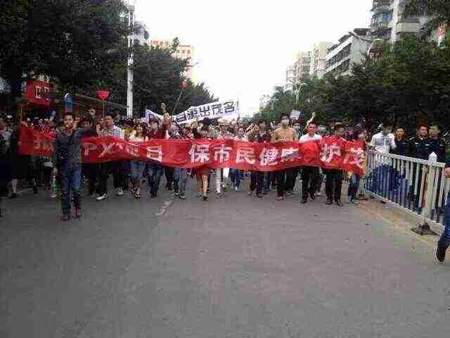 防暴警开始打人了,茂名人打茂名人,理性游行遭到暴打。我们在保卫自己的家园,为什么要打人?