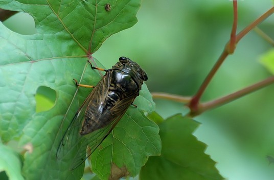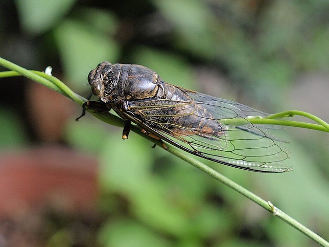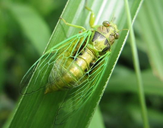 我们这里叫红眼鸡,这个比蝉更好玩,很漂亮的外衣,但非常难以捉到。