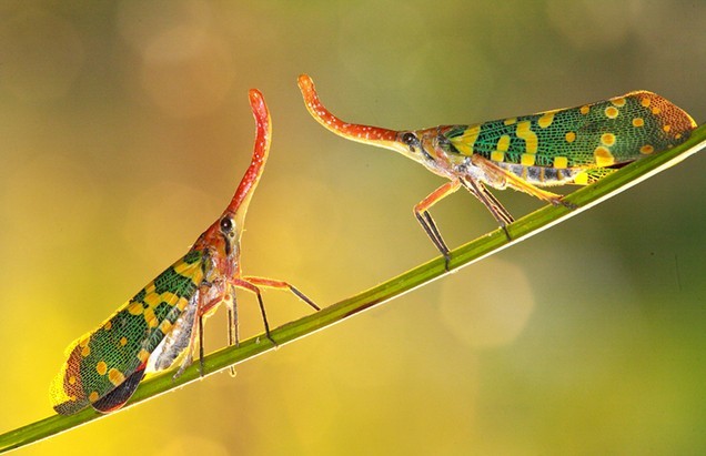 PS:在搜索蝉的图片时,看到了一种像蛾蝶一样美丽的蝉。资料说它叫“长鼻蜡蝉”,我也不知道它是蛾,还是蝉。它们羽翼色彩斑斓,眼睛小小的,鼻子长长的,不会鸣叫。我们家乡有很多,经常停在龙眼树上,我们叫它“龙眼鸡”。我今晚把图片给班里的学生看,学生说,在他们这里,它叫“昂髻娇”(我觉得这个名字更美也更形象)。我们小时候捉到它,就会拿根细线扎着它的长鼻,让它飞。现在想来还是有点残忍的。