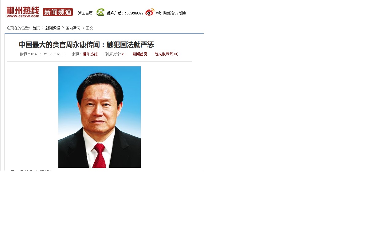 我 我不是强盗 高中一年级 注册 2009-07-30 消息 556 反馈评分 36 点数 11 2014-06-02 #17 四处都有载,看来是真的了!这里也有: http://www.czrxw.com/news/china/106589.html 附件 中国最大的贪官周永康传闻.jpg 85.1 KB · 查看: 317 中国最大的贪官周永康传闻2.jpg 159.8 KB · 查看: 305