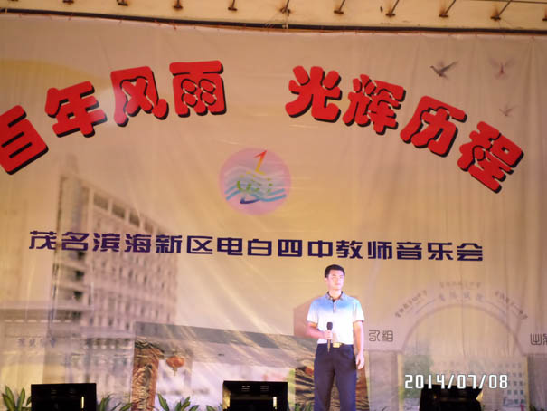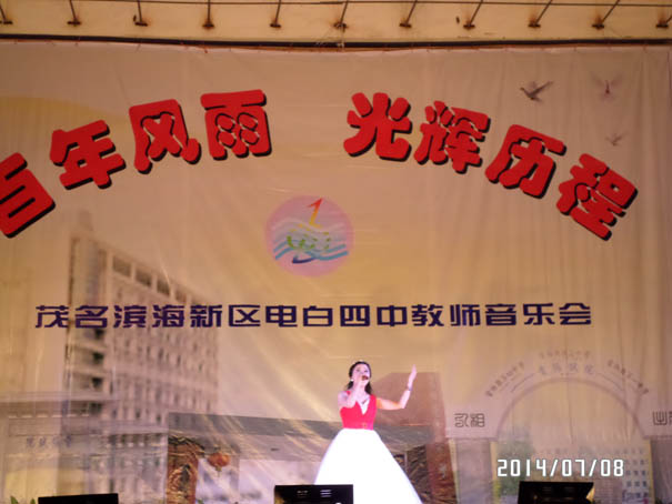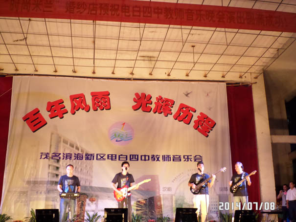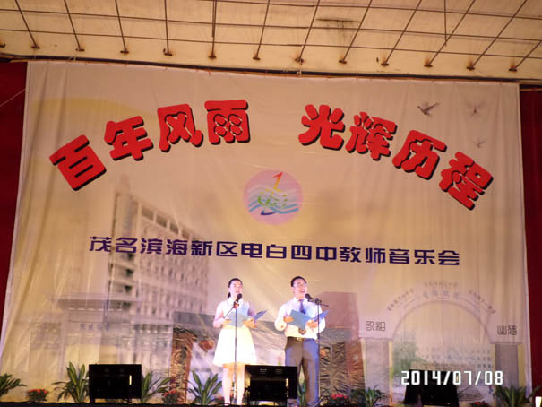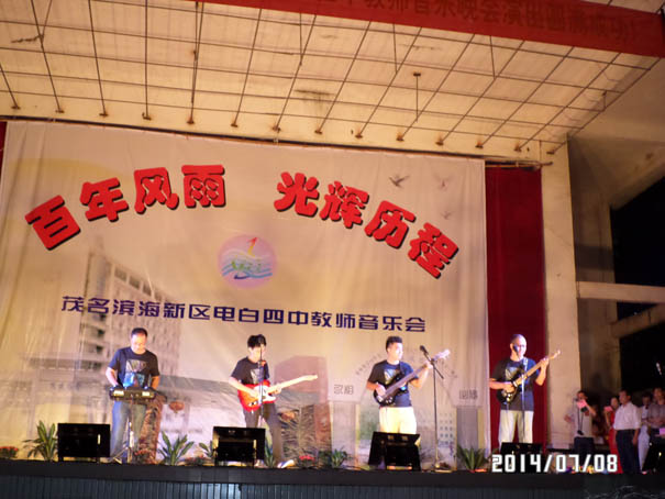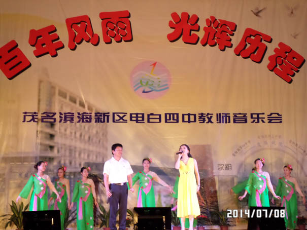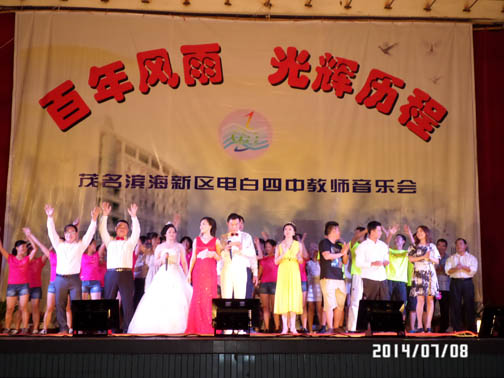 在茂名滨海新区管委会、电城镇政府大力支持下,经过全体教师辛苦努力,电白四中教师自我组织,自我策划的教师音乐晚会,在7月8日中午的雷霆鸣声预祝中,于晚上在电城镇人民公园文化广场成功演出,再现历史悠久、英才倍绲墓爬涎校深厚的文化底蕴,展现出四中人新时期的精神风貌,放飞着四中人美好的梦想!