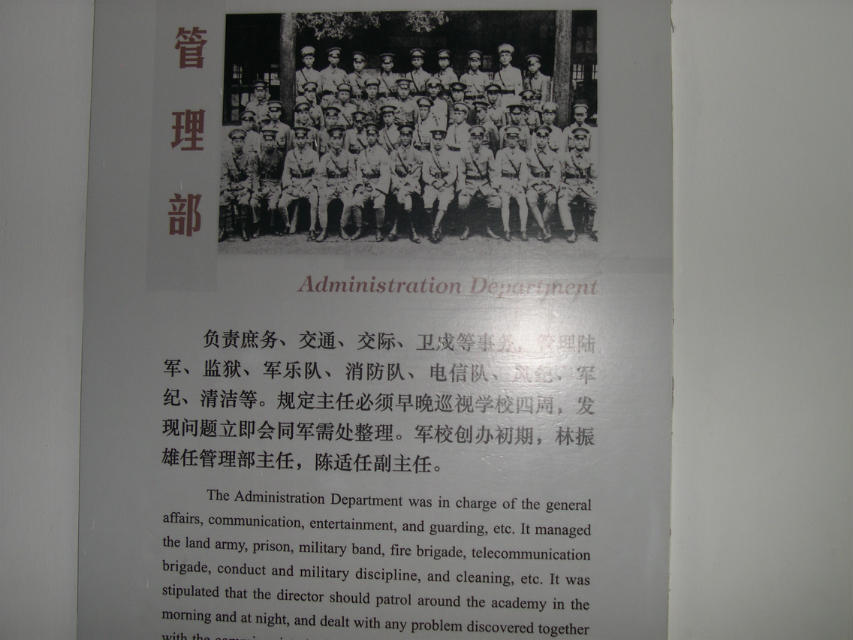 军校大门风格朴实,丝毫谈不上高大雄伟,更没有石雕玉琢,洁白的粉墙上连着尖顶的的校门,简简单单地挂着一块谭延] 题写校名的横匾,与当今的镇级机关相比也显得寒碜,但从朴实的校门中走出了许多举世闻名的军政要员,影响了中国历史乃至世界格局,你不得不叹服这确实是卧虎藏龙的风水宝地。