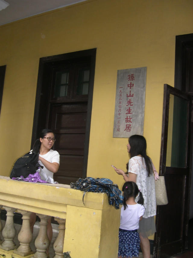 笔者参观时适逢下雨,图为在孙先生故居门前避雨的两个大妞和一个小妞。