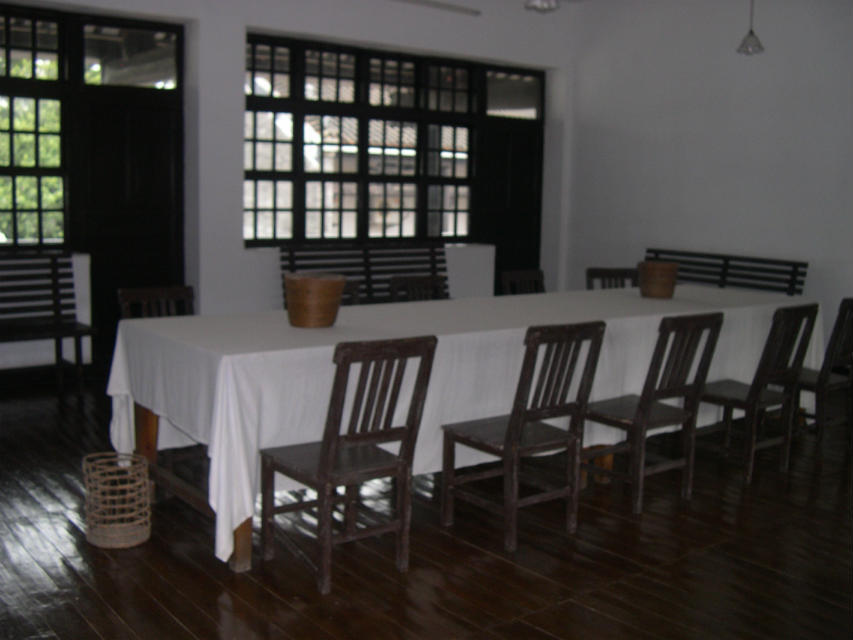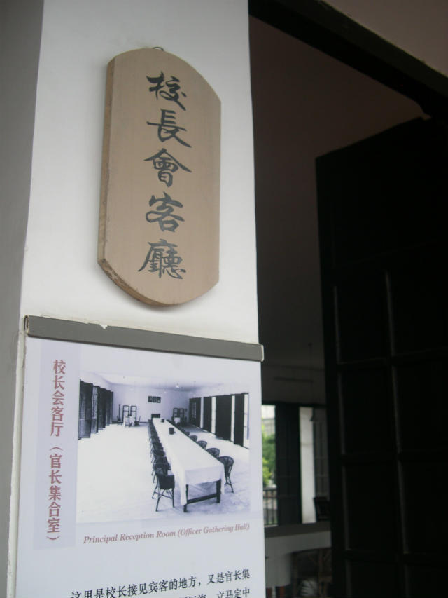 校长会客室,没有豪华的沙发,更没有空调设备,当年大名鼎鼎的校长蒋介石先生就是在这几把简陋的木头椅子上接待各方客人