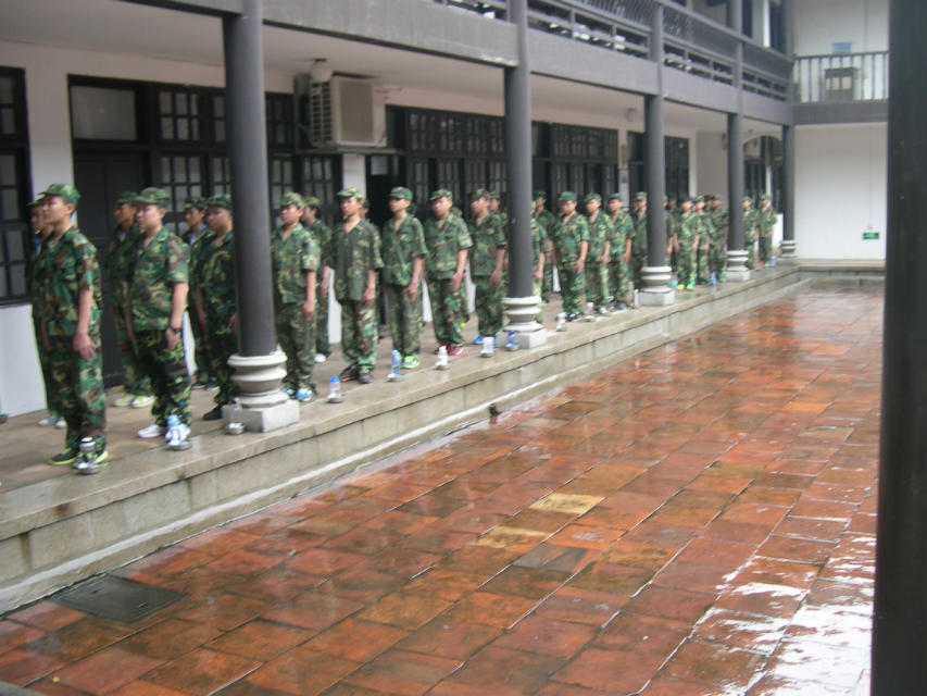 在军校里参加军训的中学生。