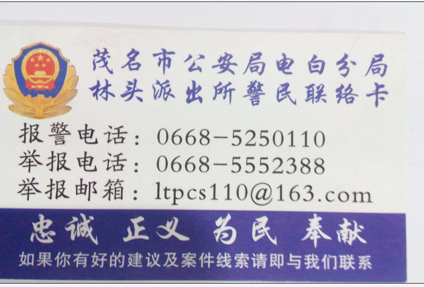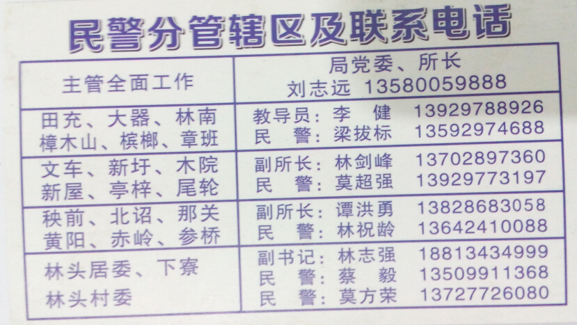 新所长,为人民,出新策,求平安,顺民意。 盗与抢,为主案,二流子,白粉仔,为根源。 小卡片,暖人心,职责明,各其职,尽其力。 寄期望,有案件,有建议,即管提,警为民。 出警快,办案公,讲正气,要廉洁,为首要! [attachmentid=339854] [attachmentid=339856]