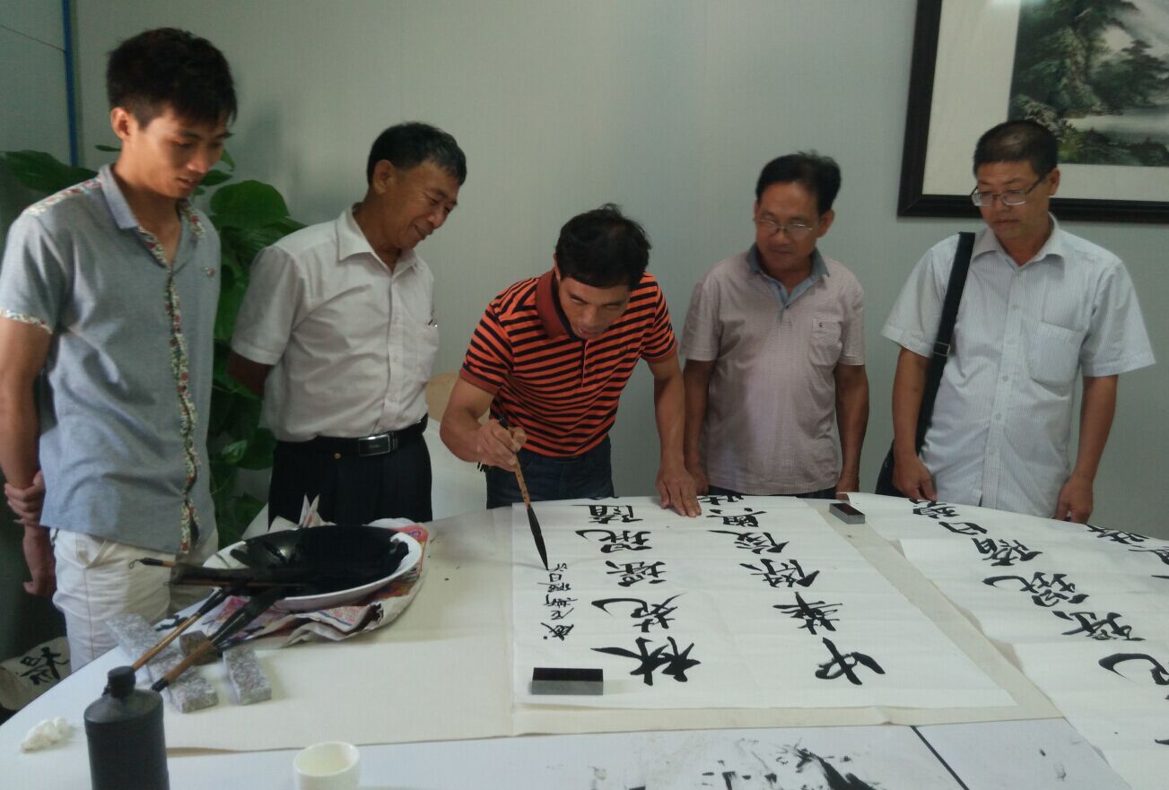 为庆祝威尼斯假日酒店征联的圆满成功,树仔以树仔镇为主的联友们昨日中午在树仔镇首骏渔村召开庆祝会。树仔镇的文化名人邓英臣、邵其仙,博贺的李伟立、杨志远,麻岗的邵森等超过十七位文友欢聚一堂,电白区文联的陈姐到场指导工作。 会议在热烈的掌声中开幕,湖海山人首先代表征联方给获奖者代表、一等奖获得者詹宁颁发树仔片的奖金1300元,这意味着本次奖金的发放工作全部完成。 电城古楼诗社的杨先生当场吟七律诗一首,祝贺詹宁技压群雄,博得掌声满堂。邓英臣先生也乘兴以清朗的声音将这首诗再次吟唱。 被大家的热情氛围所感,“状元”詹宁作诗一首回应。 会议上,大家谈笑风生,邓英臣先生时而吟诗作对,时而高歌一曲,他儒雅的言笑将会议气氛步步推向高潮。 杨先生即席挥毫,隶书“惠风和畅”令大家赞不绝口,卓先生大笔一挥,写下“群贤毕至”四字呼应。 应大家的要求,詹宁先生用刚劲的笔力写下他的获奖楹联“林苑瑶琨随日碧;中华俊杰与时雄”,并盖上自己的名章与闲章,山人笑他有备而来如唐伯虎:“吃饭的家伙一日不可离也!” 至下午近三时山人离开时,文友们雅兴未尽,还在翰墨怡情,诗书快意。估计现在还吟诗作对。