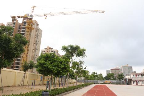你说的这个机械叫“塔吊”,尽管吊臂末端横在学校上空,但建筑材料一般不会在末端起吊,因为不需要这么大的活动范围,所以孩子们不至于冒着生命危险锻炼。