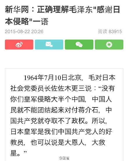 新华网:正确理解毛泽东“感谢日本侵略”一语