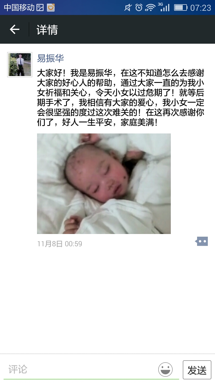 孩子的父亲易先生,左眼角膜炎溃疡,也但愿他早日康复!