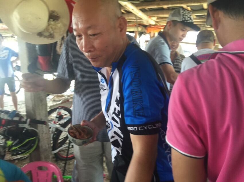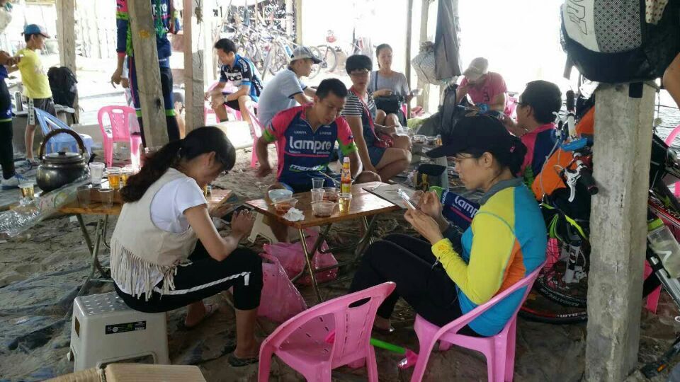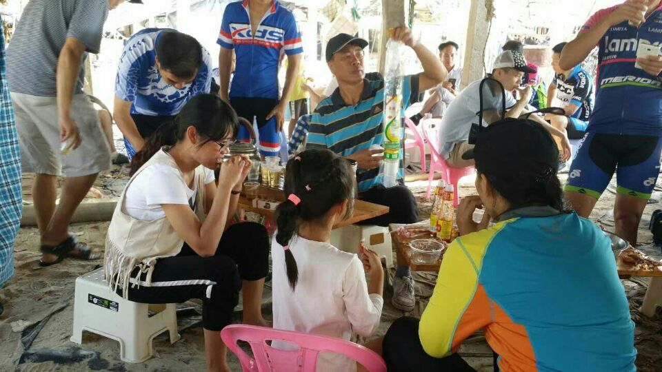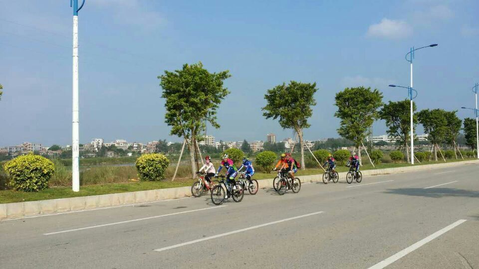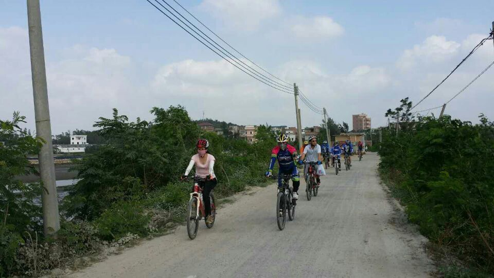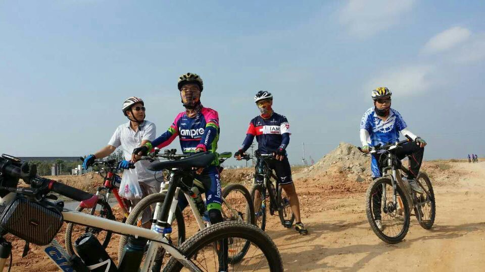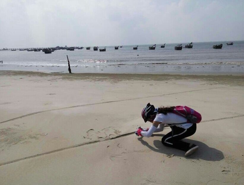 一路欢歌,从水东到龙山杨梅海短短30公里,让骑士们享受了碧桂园康庄大道,宽阔的水泥路让大家恣无忌惮,连新手都可如入无人之境。但接下来的旦场镇王村盐田施工基地,让骑士饱受烈日黄沙之苦,放眼远望茫茫一片,路上浮尘寸厚,连沙场老将粤西狼都挂彩落马,不禁感叹:别羡慕哥,哥只是个传说;到了龙山尖岗村委会绿道,多年的风沙让绿道变成"累"道,人难行车难推,不过即使如此,骑力过人的家琪还是在海滩表演了胜过欧阳锋的"蛤蟆功",让我们的体育老师一中小陈感到大学四年白练了,自愧不如。