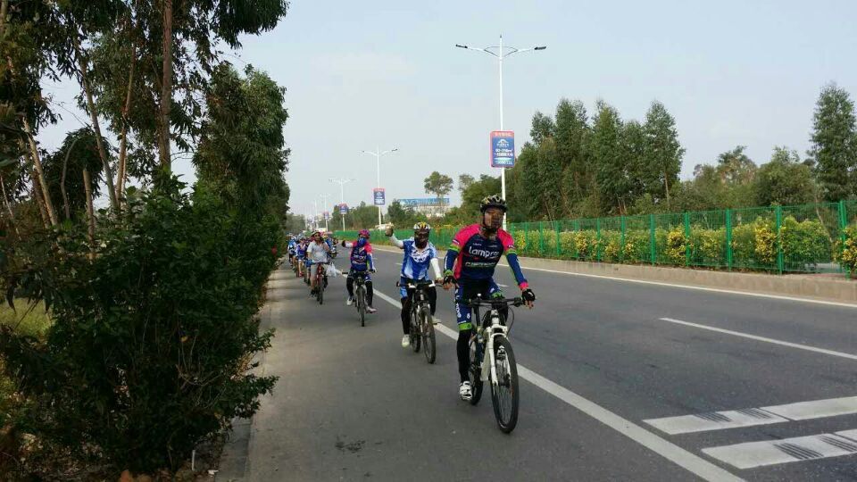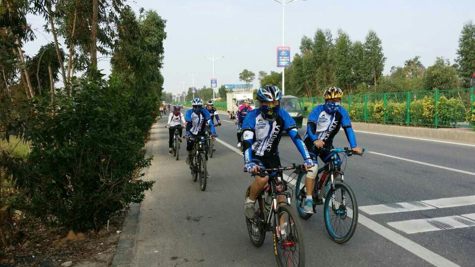 今早8时半,朝阳透过薄薄的云层轻轻地送来温暖,和风拂面,集中在区府门前的21名骑友个个神彩飞扬,恨不得立即飞奔而出。