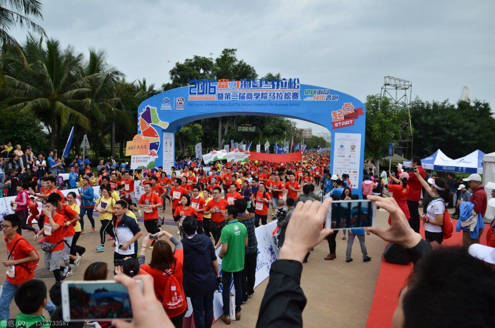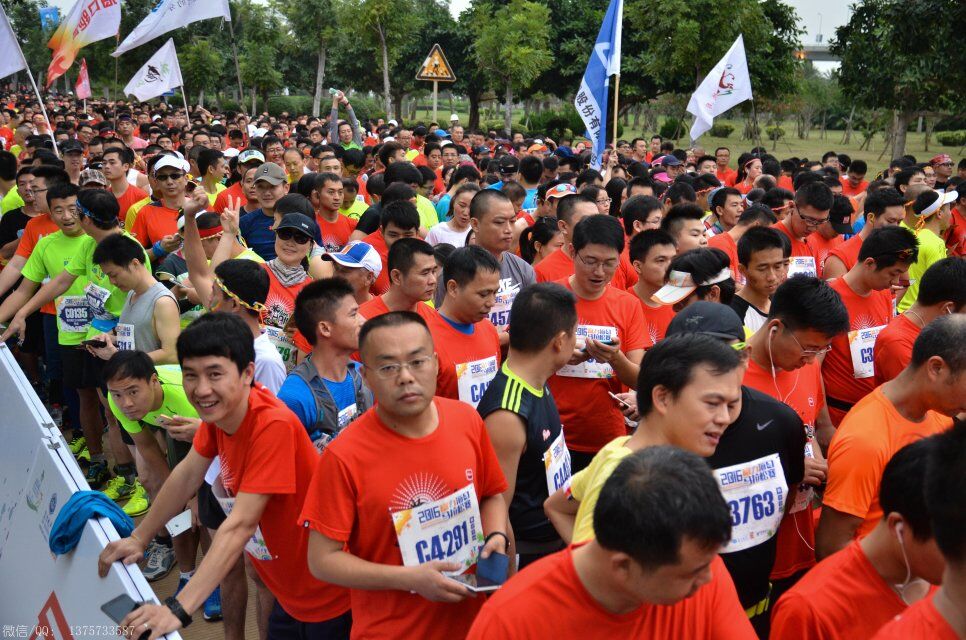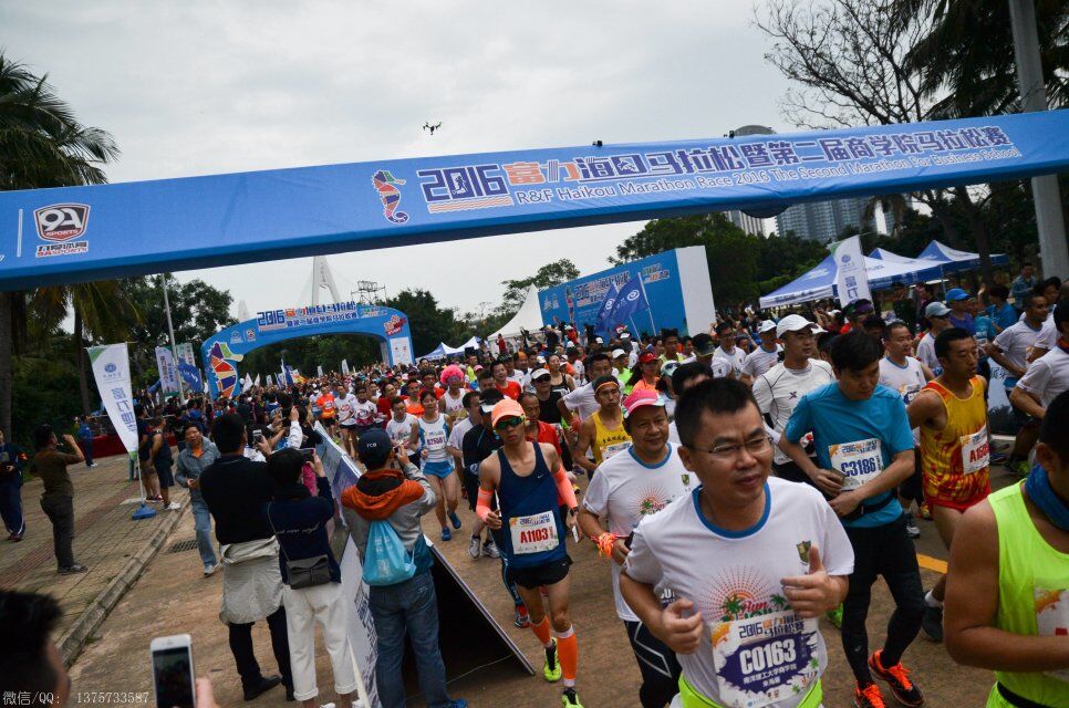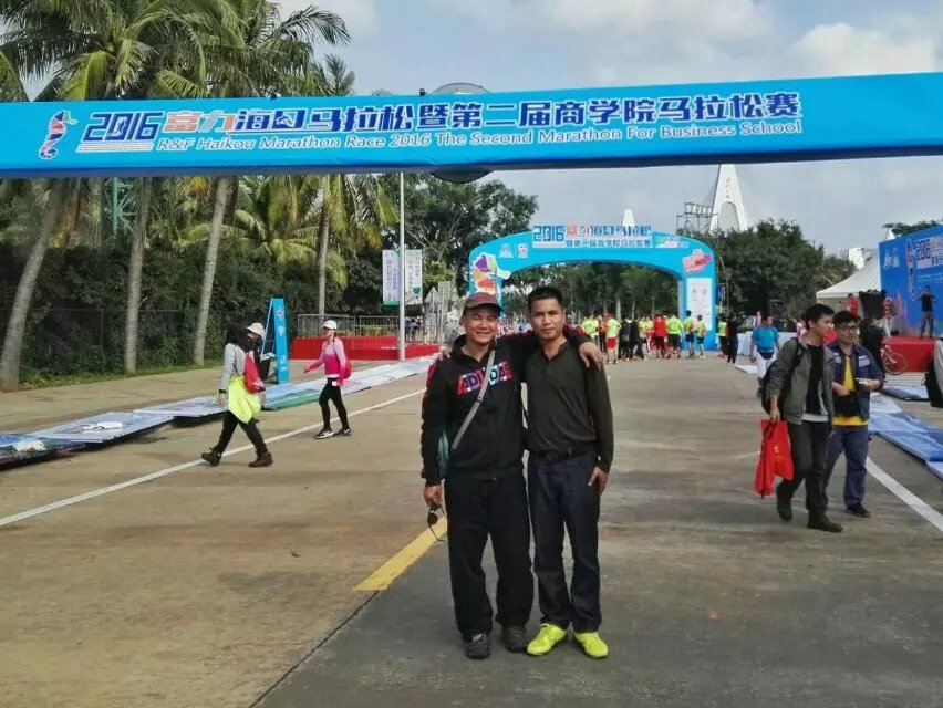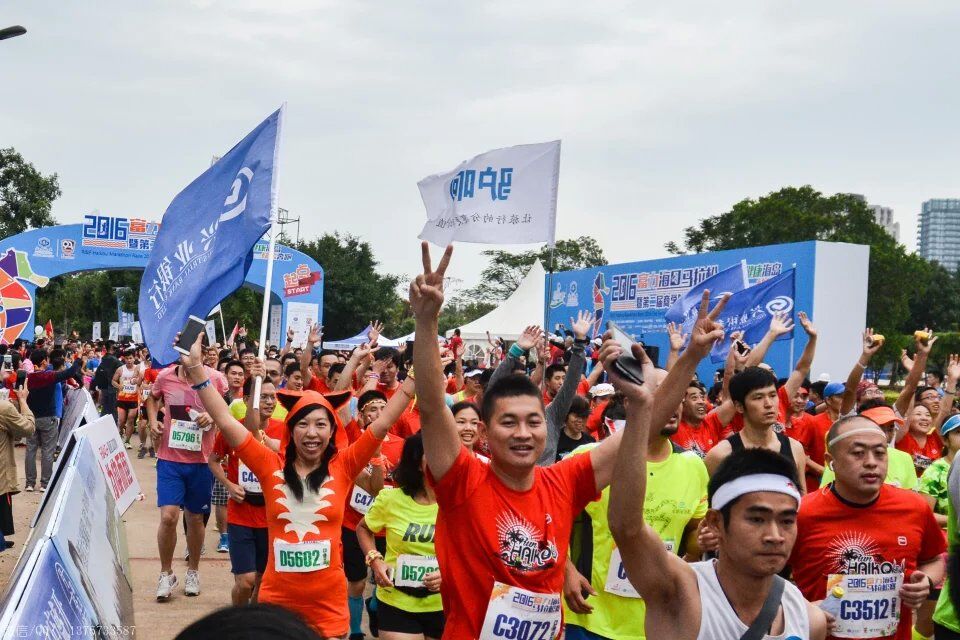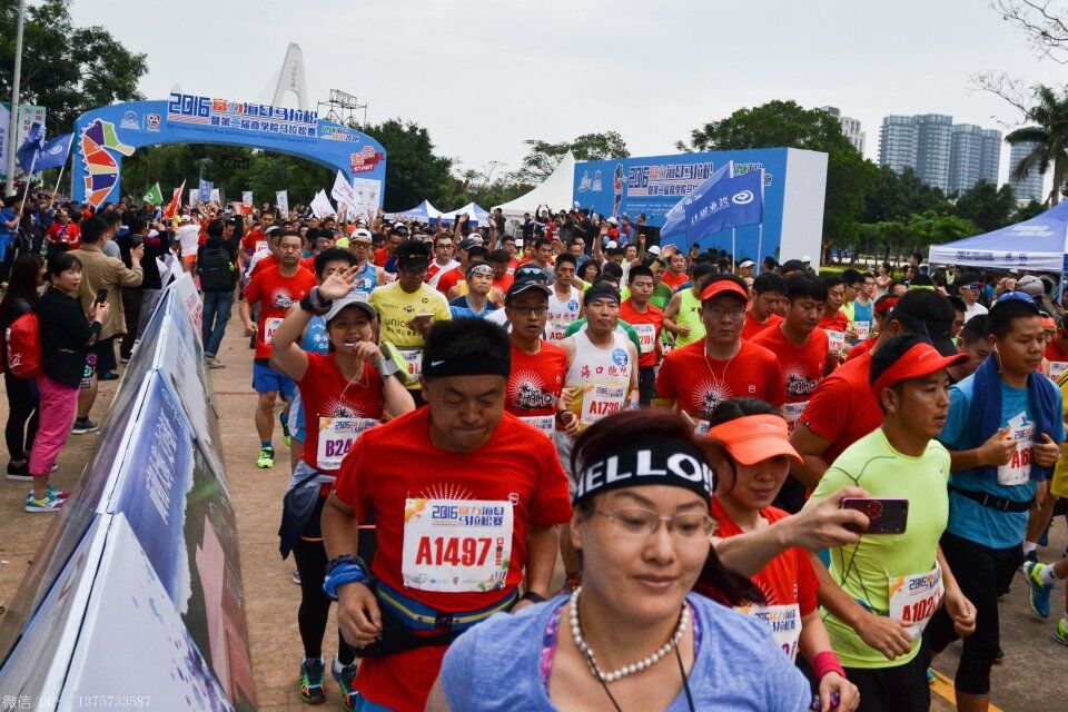 2016年1月10日上午8时,海口马拉松在海口世纪公园鸣枪开跑。海口马拉松共报名10038人,其中,全程赛1727人,半程赛2693人,迷你赛5618人,选手来自15个国家和地区,包含中国的港、澳、台地区选手,其中来自电白的水东湾跑团13位跑友也报名参加了这次盛事。