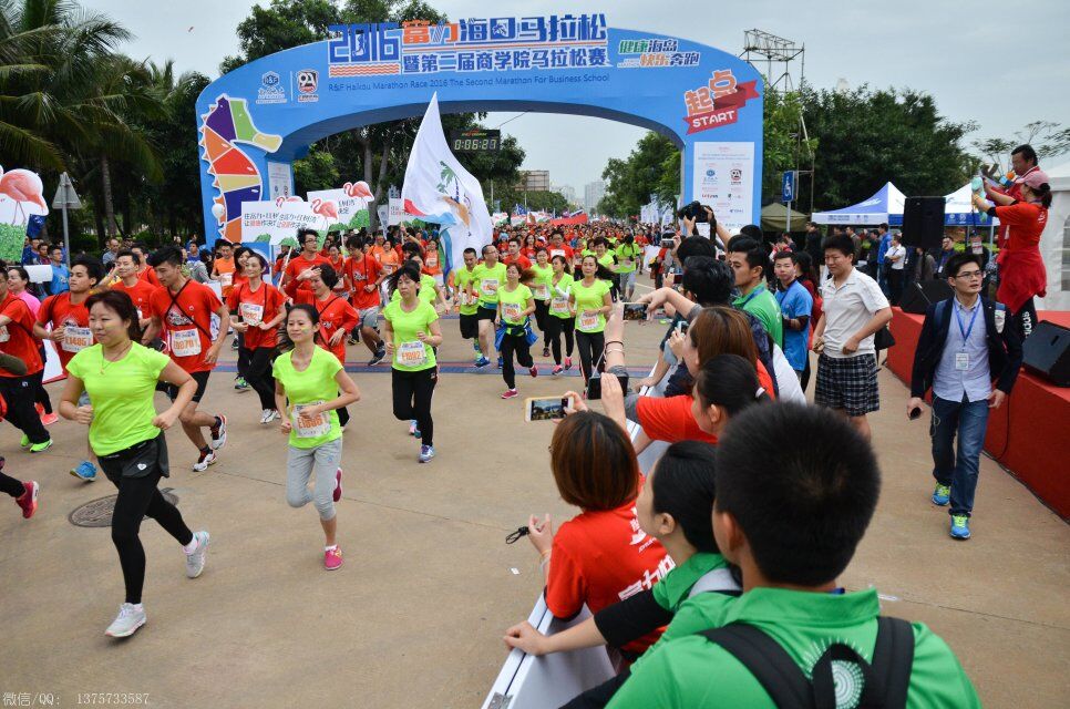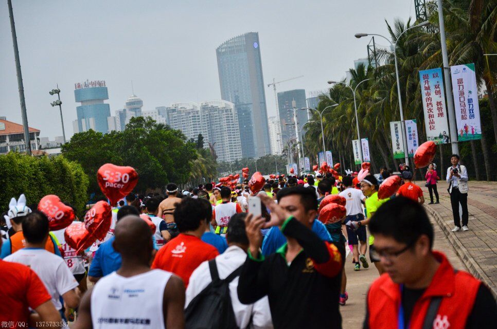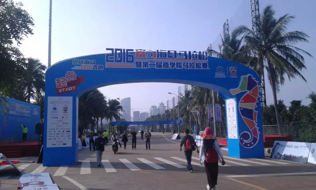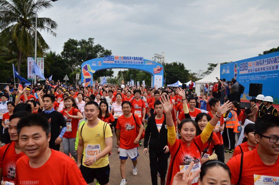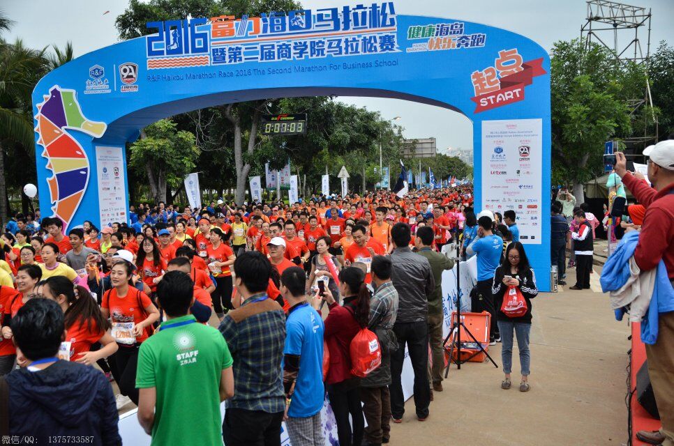 2016年1月10日上午8时,海口马拉松在海口世纪公园鸣枪开跑。海口马拉松共报名10038人,其中,全程赛1727人,半程赛2693人,迷你赛5618人,选手来自15个国家和地区,包含中国的港、澳、台地区选手,其中来自电白的水东湾跑团13位跑友也报名参加了这次盛事。