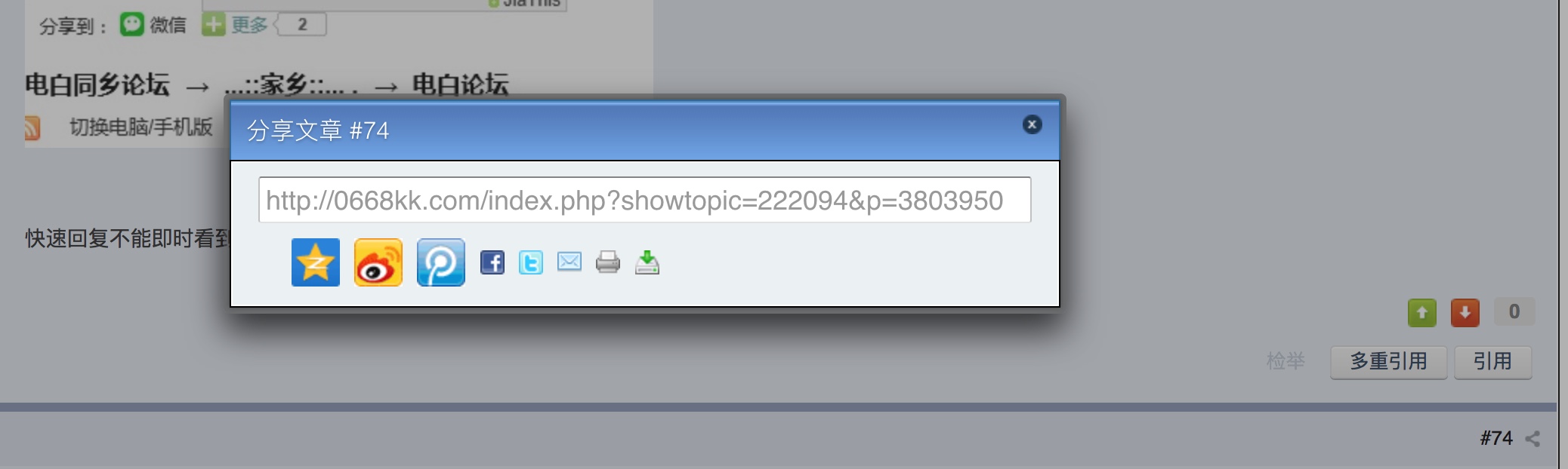 已修正,帖子下方新增微信、QQ空间、新浪微博、腾讯微博等分享链接,保留facebook、twitter分享。