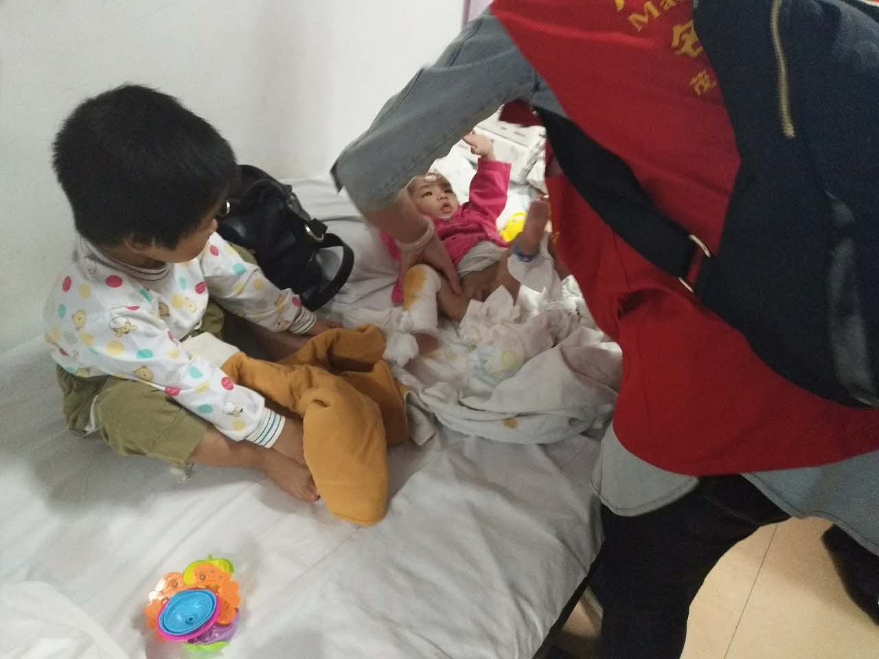 受伤者是一名8个多月的男婴,其有一个哥哥(4岁),一个姐姐(3岁),父母为智力低下者,于2017年1月24日离家出走,至今未归。蔡阿婆现年62岁,是受伤者奶奶。蔡阿婆有两个儿子,小儿子(即受伤者叔叔)已于几年前因与蔡阿婆发生口角,带上老婆出外打工,至今也未回家。经了解,蔡阿婆现与两个儿子、媳妇都联系不上。现在是蔡阿婆带着三个孙,以拾荒为生。蔡阿婆本人精神欠佳,平时早上把最小两个孙锁在家,带大孙子出去拾荒,晚上才回家,因此男婴受伤的主要原因是因为无人照顾。