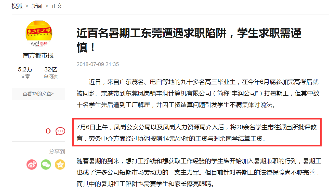 新闻 近百名暑期工东莞遭遇求职陷阱,学生求职需谨慎!