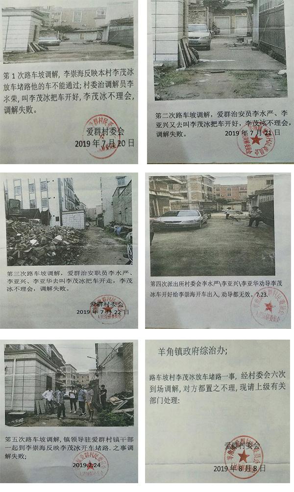 当地村gan部多次到来,让李茂冰把车开走,但是李茂冰不听劝阻。下图是村委会的6次证明。