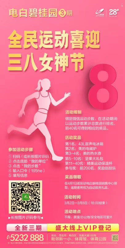 W w2365554 幼儿园 注册 2020-03-01 消息 12 反馈评分 0 点数 0 2020-03-02 #1 【电白碧桂园·3期】 全民运动 强体质 赢大奖 跑动喜迎三八女神节 电白人的都市生活大城 全新三期 盛大线上VIP 登记 联系方式:15626485034(微信同号) 附件 微信图片_20200302205335.jpg 57.8 KB · 查看: 396