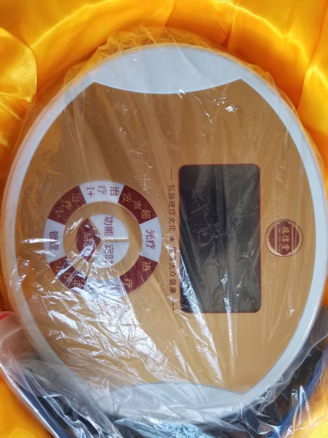 德信堂光波中频经络电疗按摩仪 多种按摩理疗功能,足疗拖鞋火罐。功能齐全九九新 买回来用了几次激光电疗。其他配件没用过。移动公司那员工护理活动3500大洋买的,现2000元出让。需自提。联系电话13580040869