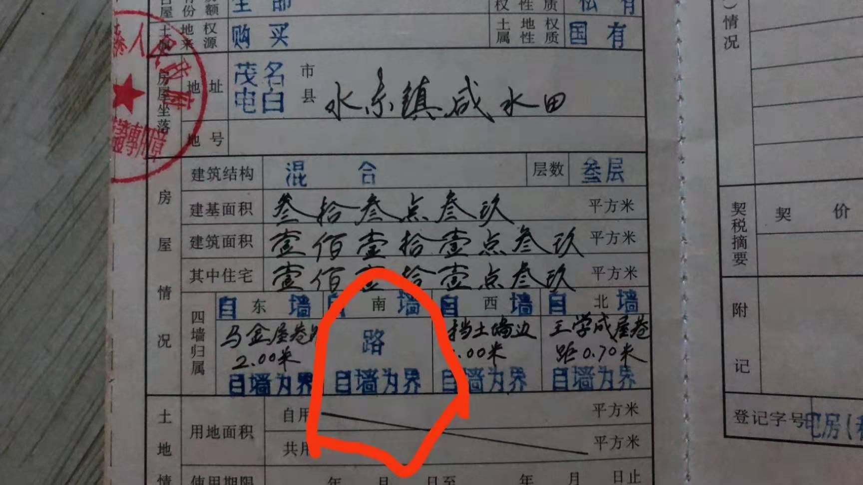 是人家隔壁建房子,建到那户人家门口,不给人家留路,那户人家的厨房已经30年了,强拆开给人家起建房子。电白确实有离谱,不给人家留路了。
