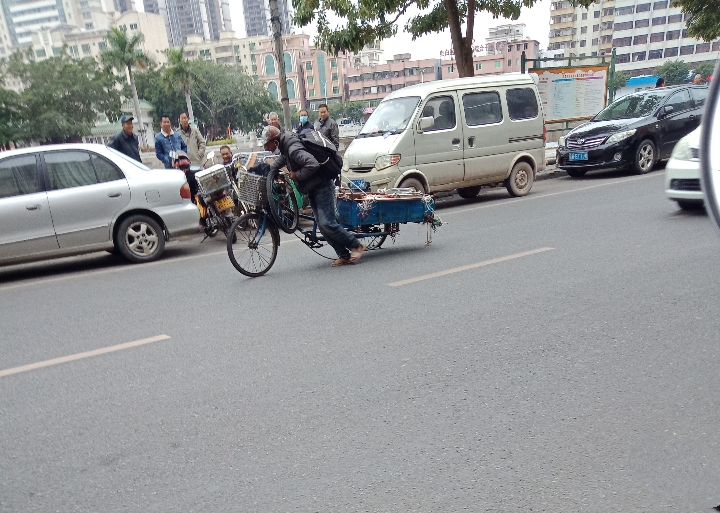 S sBsB 大学一年级 注册 2019-09-29 消息 734 反馈评分 54 点数 11 2020-12-17 #16 看图,像一边车轮掉出来,并挂在三轮车头,而另一边的车轮也没气了,连轮胎外表都突出来,而三轮车链也掉出来,看样,只是靠一条绳索用肩膀扛着拖行着一堆废铁?