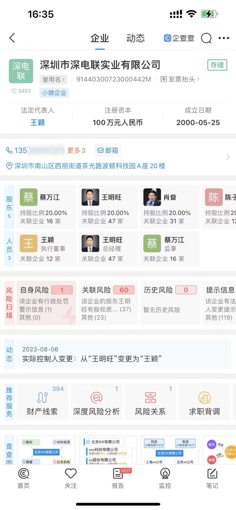 2023年8月2日,深圳市深电联实业有限公司”注册资本不变,公司的股东不变。法定代表人:王明旺更为王颖。(以上公司的注册及变更信息均来自天眼查工商信息登记)