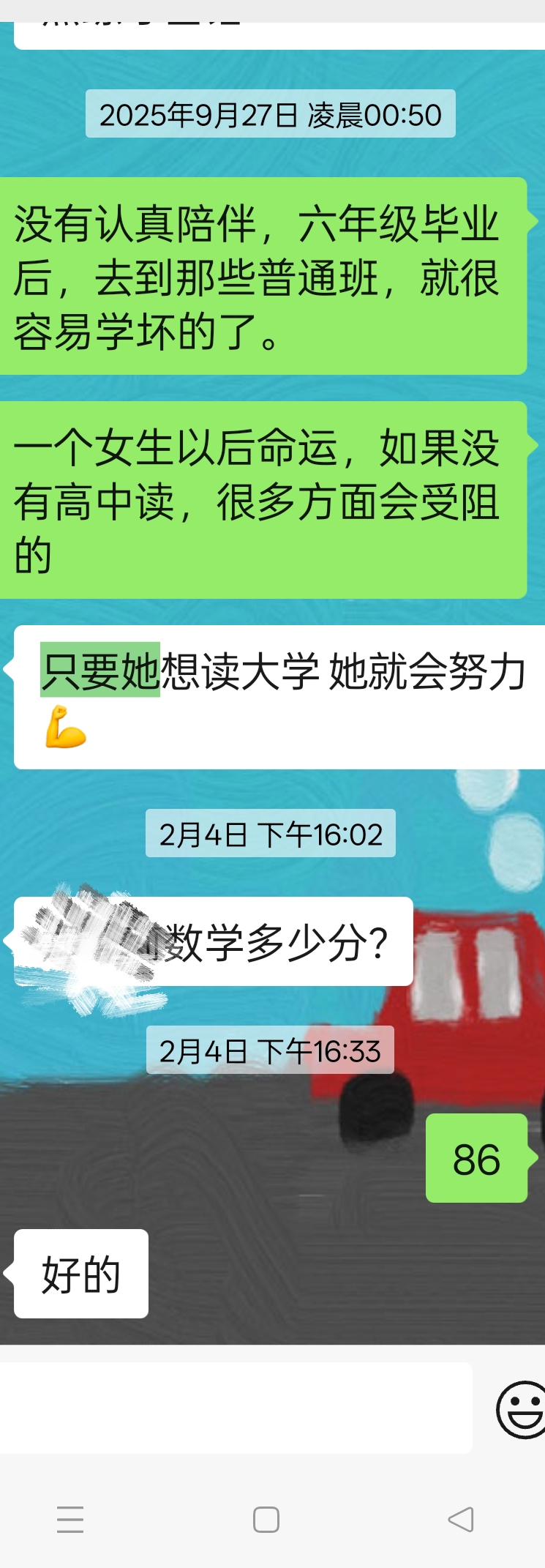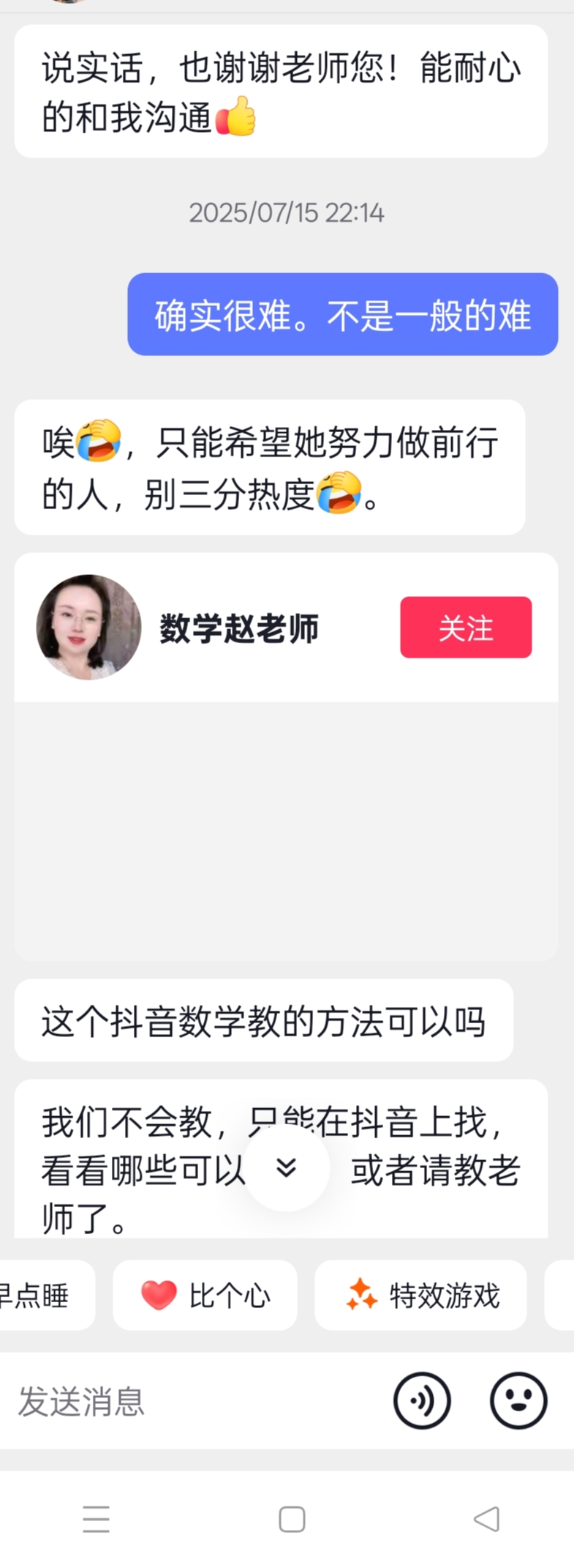 一些家长就是想老师给她提供情绪价值。我不给面子她,因为她也不会陪孩子去学习。被我逼才说一句没有文化的话,只要她想读大学,她会努力的!