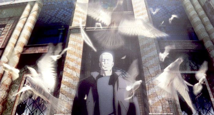 影版的攻C雨由押井守所а荩故事取裁自漫中的故事,主@在智能程序"傀儡"c我女主角草S素子。c漫不同,狎井守在此片加入了很多人的L格,使影夥烂C了很多。而故事的主{亦A向於草S的自我追ぁ