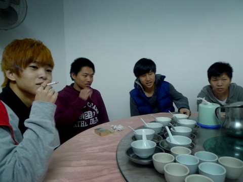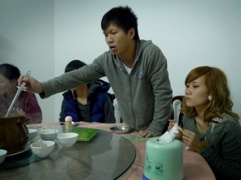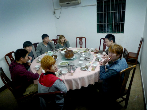 同一间房吃饭,同一群人,同一个地方泡温泉。