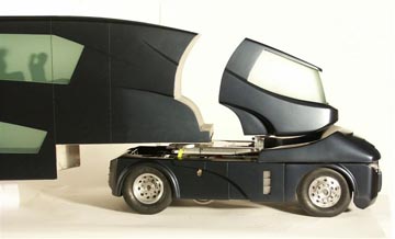 德国某重型车生产厂商日前发布一款外形超酷的客货两用豪华集装箱货车,该卡车不单可以运输集装箱货物,更可以运送几十位乘客做长途旅行,作为客车使用时,车厢内使用了各种高级影音设备和数字设备,可以与豪华客机的机舱媲美。