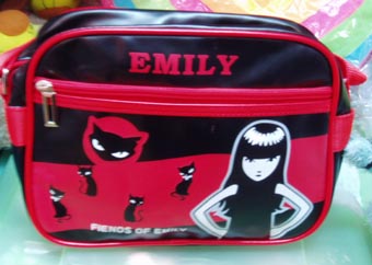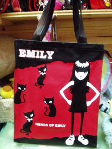 一头乌黑及肩的长发,身穿黑色裙装,脚上套着娃娃鞋;却有着一副漠不关心、横行霸道的稚气脸孔。强悍的出现在各个角落中:拥有独家出售的衣服、包包、笔记本…等。甚至还出版了小书,更有专人为她架设了虚拟世界。她就是拥有法国娃娃梦幻般名字的Emily。
