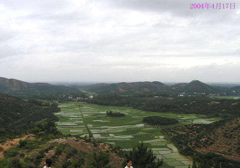 好眼熟,好象是“丝线吊铜钟”,右边那个山包是铜钟,对下那块坡田是钟摆锤,再对下那块坡田是钟穗子,好象是去唐村那条路进去的。