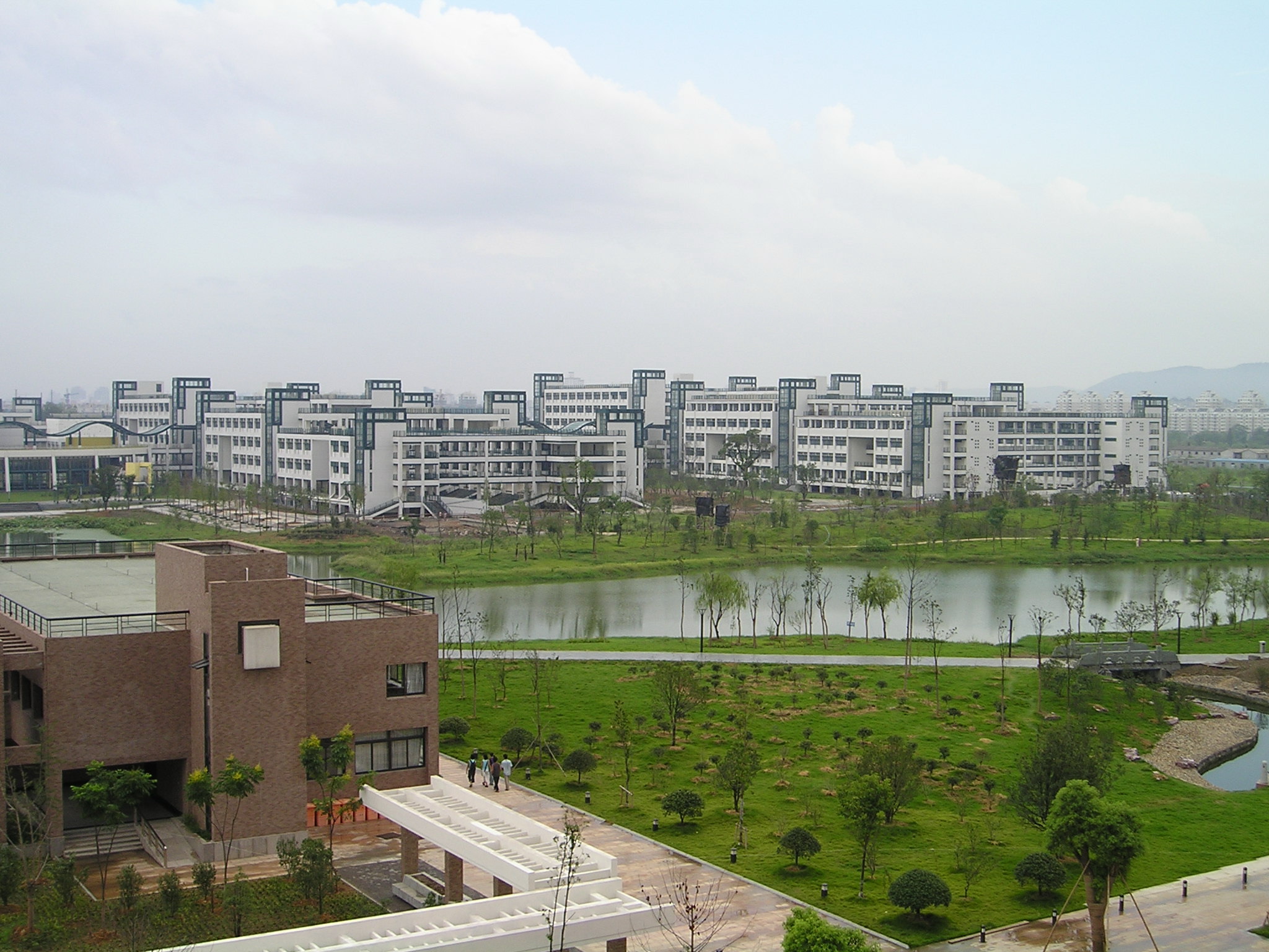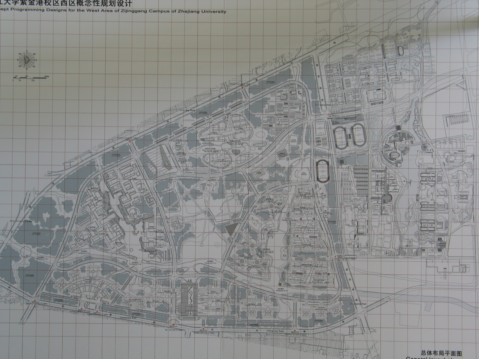右边那小块就是现在的浙大紫金港校区,面积三千多亩,左边那一大块就是在筹划中的西区,面积5000多亩..
