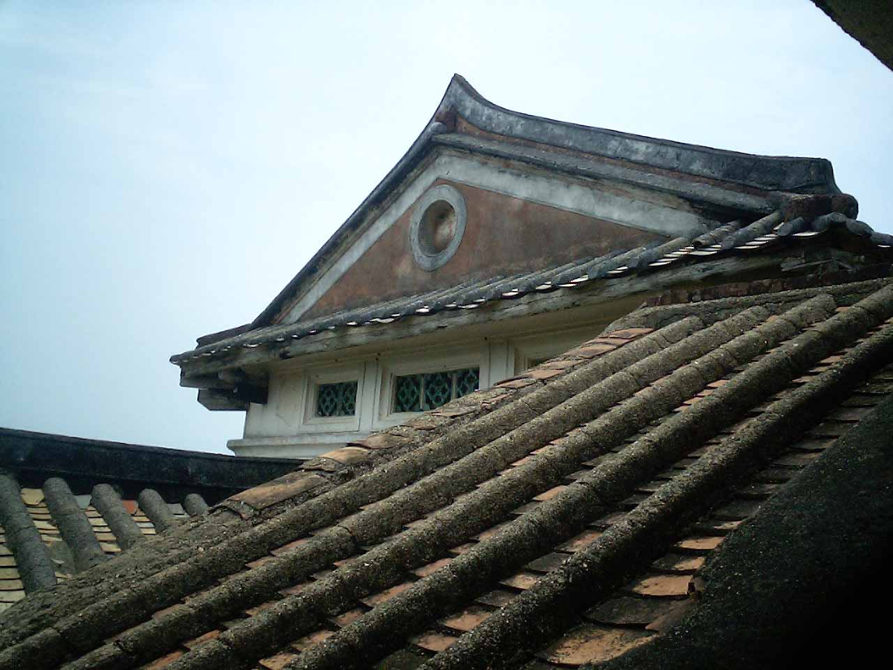 首先,是比较传统的中国庭院式住宅,坐北朝南,背山面水(后面那坐山叫什么我忘记了,呵呵,建筑的前面原本是河,前景开阔是很理想的风水好地!)