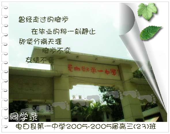 QUOTE(小曼蛙 @ 2006年05月04日 Thursday, 05:48 PM) 哦.你的同学录什么时候要拿去打印的,说个时间,我一个晚上设计好.不过今晚要出去,晚点回来再设计好了..呵呵.. [snapback]1186186[/snapback] 8着急的说 慢慢来..