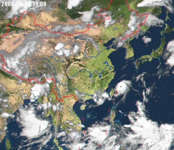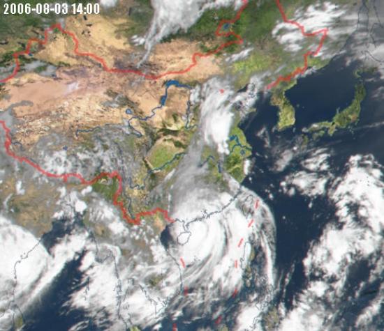 8月2日,“泰比安”加强为台风后,其云图显示中心区域的旋转速度很快,中间那个空白点就是风眼,清晰可见。
