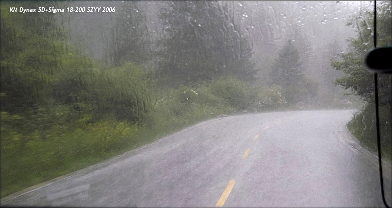临近入住的酒店,突然下起大雨,山里的天气真是说变就变
