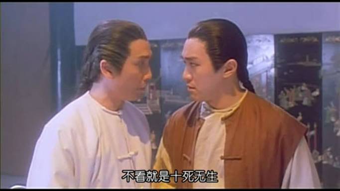 周星驰:你不是连这么大根头发都看不见吧?(指着鸡冠)
