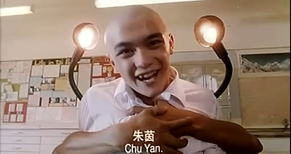 《百变金刚》中的小光头,来,答个题先。明太祖是哪个?A、朱元璋 B、朱油糕 C、朱茵。朱茵,错(噼里啪啦一顿拍)。