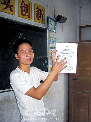 他叫李瑶,今年24岁,出生湘乡市壶天镇一个普通的农村家庭。2001年李瑶高中毕业后因家庭困难等原因一度缀学,到广东打工。2003年经过复读后,考上了江西省赣南师范学院英语专科,第一学期东凑西借六七千元供大学第一学年的学费,2004年正当读大二时,由于家庭经济能力确实无法支撑,李瑶从此没有钱按时交纳学费,欠下了8000多元。今年毕业,李瑶因欠学校8000元学费而没能领到毕业证。李瑶很希望像其他同学一样,到广东成为一名编制内的老师,但没有毕业证影响了入职考试。想起欠学校的学费,他便托同学找到丰良小学的彭灵校长,“你真想来这里当代课老师吗?”小李意志坚定地说:“生活所迫,行呗!”于是他很快收拾行李走进了丰良中心小学的大门。