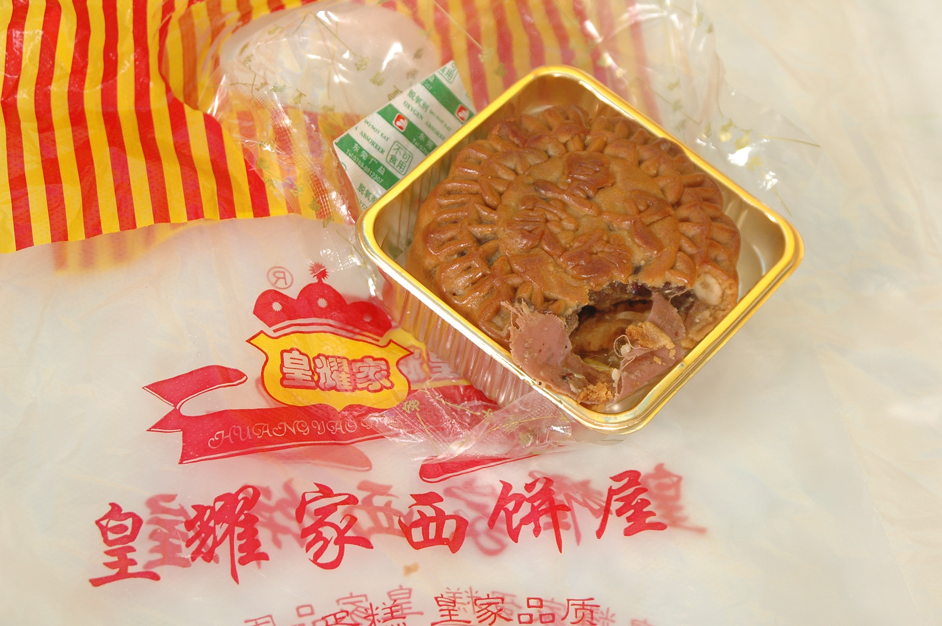 刚接了皇耀家负责跟进此事的工作人员的电话.向我述说了相关情况.我问及证据(月饼)在何处,他们说消委会已封存交由当事人带回去保管.店方表示会正面处理此事,同时提出,要求当事人对证据做检验.对于证据确认书里面"月饼里面确实有一块止血贴",他们的解释是,只证明当时的三方在场的人看到月饼里有止血贴,但都不能一致通过是吃前存在,还是吃后存在.对此双方仍存在一定的争议,消委会也没能准确下定夺.待检验过后才能知道!